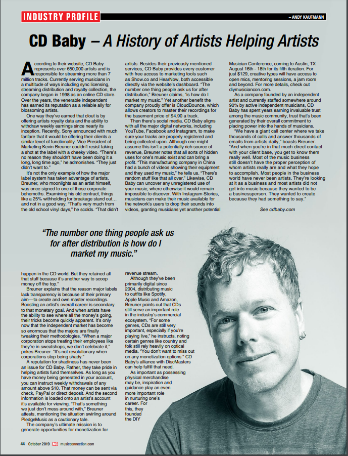 “Kevin has used the DIY Musician podcast and blog, as well as our annual conference, to demystify distribution, monetization, and promotion and help make success in this atomized music economy—however an artist may define it—accessible to all artists, regardless of whether they use our services or not,” notes CD Baby President Joel Andrew. “Because we’re all artists ourselves, we see our mission as sharing what we know as broadly as possible. Now we’ll be able to bring even more energy to empowering and uplifting the diverse international community that CD Baby serves.”